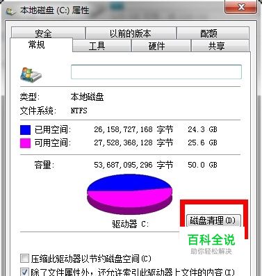 在属性中可以看到一个【磁盘清理】点击后会自动弹出一个窗口,检测你C盘中的垃圾缓存,然后你勾选你认为不需要的缓存,进行删除就可以了.