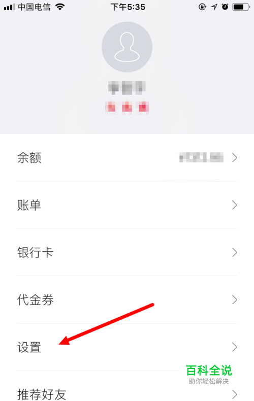 再在 账户 页面,点击 设置 。