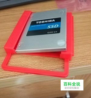 先把SSD放进台式机支架,一般就像下图这种红色塑料货柔韧性好,用点力把SSD卡好就行,很简单。