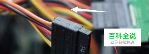 现在我们在机箱内找出硬盘电源线,电源线你顺着原先安装的硬盘往上摸,一般就会找到硬盘电源线分线及接头。形状是长方形扁扁的,如图所示把电源插在SSD上。电源接通完成。硬盘电源接头都一模一样,你只要看到这样的接头就可以插。。