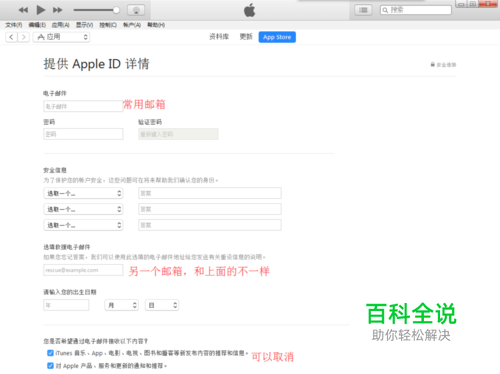 进入【提供Apple ID】页面:详情如下图所示,按照相关要求填写即可
