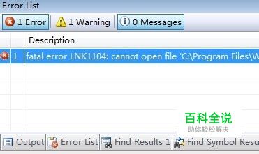 VS链接错误:LNK1104: cannot open file原因