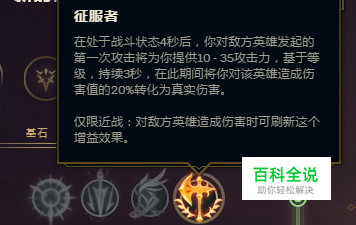 诺克萨斯之手点出精密系上个版本新增加的征服者符文。这个符文触发的时候可以将诺手的部分伤害转化为真实伤害。