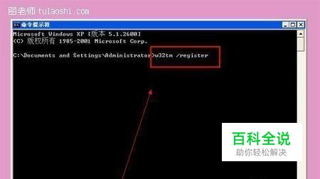 第二步:在命令提示符里面输入 w32tm /register,回车。