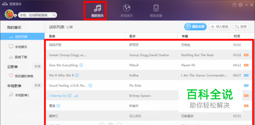 打开百度音乐播放器,然后找到自己喜欢的音乐。 在“我的音乐”中查找即可。