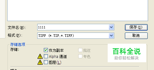 方法 1 :我们点击保存图片,出来对话框显示如图,格式选择TIFF 格式 ,作为副本保存就可以,接着出来个选项对话框,记得在存储透明度上打勾 。