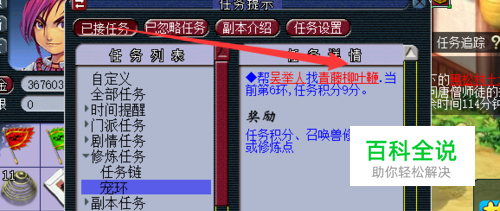 任务类型1:寻人——获得一定量的修炼点数以及1点任务积分。