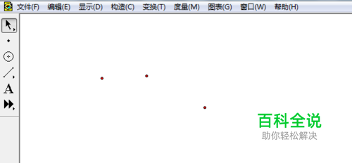 问题的关键所在。平面旋转必须有旋转中心,就是圆心,还需要一条主线段,就是半径。旋转的图形随主半径而动。因此,必须先画弧,然后画半径,再由半径画出三角形。打开几何画板。在工作区画三个点。