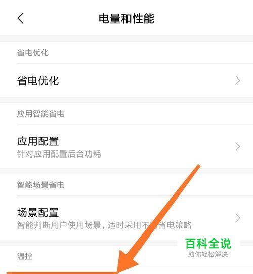 点开“电量和性能”后,在页面底部找到“温控配置”。