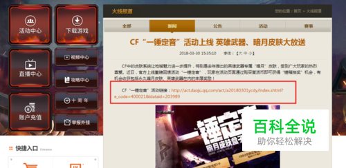 打开浏览器,搜狗搜索“CF一锤定音”活动上线”