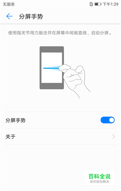 横屏状态下,用指关节敲击屏幕,敲下去之后不要抬起指关节,直接纵向划过屏幕,进入分屏。