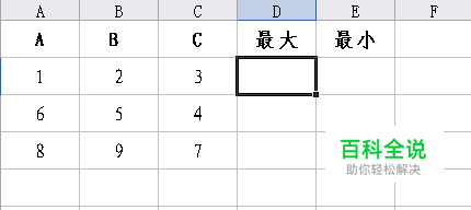 打开一张演示样表,如下图。“最大”列存储A到C列中最大的数据,“最小”列则存储最小的。