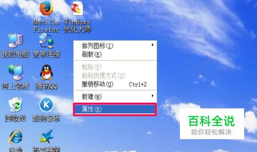 首先介绍第一个恢复方法,先从桌面空白处右键,选择右键中的“属性”菜单。