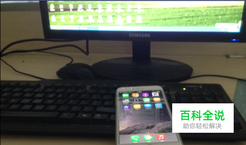 首先将iphone6plus手机充电数据线连接至电脑USB接口上。