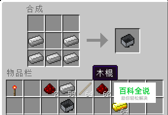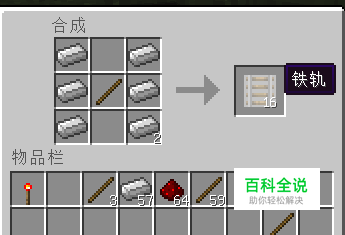 普通铁轨,由6个铁锭和一个木棍组合成,用来起到缓冲和轨道拐弯作用,需要手动按前进键才能持续向前跑。