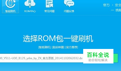 首先插上USB数据线连接电脑,可从选择已下载完成的ROM包,点击“开始刷机”。