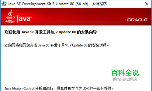 以安装jdk1.7为例,双击运行jdk-7u80-windows-x64.exe,点击下一步: (注意:选择jdk安装目录时尽量选择文件名不带空格的目录)