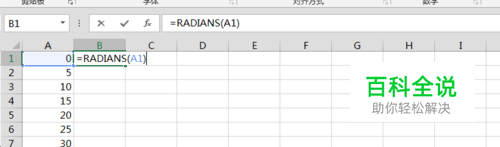 然后利用Radiant函数将角度转换为弧度,具体公式如下: