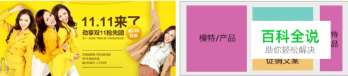当海报上要放置过多的促销产品。可以采取这种排版。中间是一个半透明的框,输入文案。