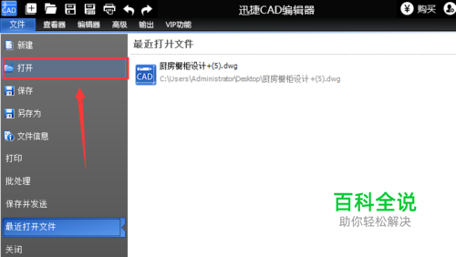 通过百度搜索下载一个CAD软件,软件打开之后,点击软件界面的“文件”选项,然后点击“打开”选项,即可将CAD图打开。