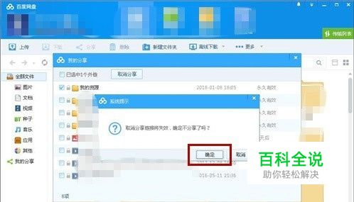 勾选成功后,点击“我的分享”小窗口中的“取消分享”按钮