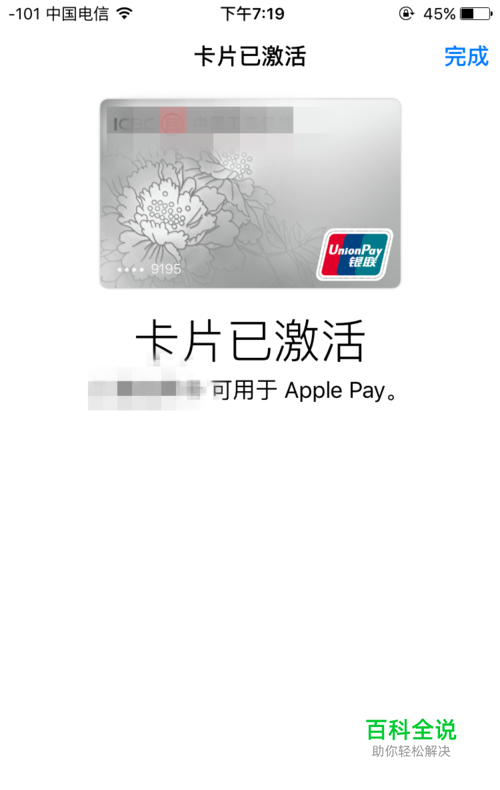 最后大功告成,提示你卡片已经激活,点击右上角的“完成”。