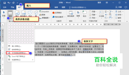 如何利用word将文字转换表格