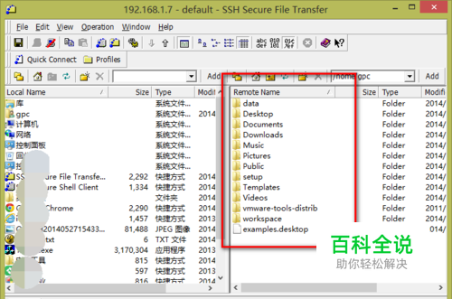 ⑤ 完成连接后,SSH Secure File Transfer Client右侧即为远程目录(图),此时可以像操作FTP站点一样操作远程站点。