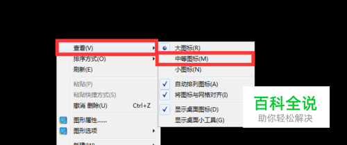 单击鼠标右键,点击【查看】按钮,如图,会显示大图标、中等图标和小图标按钮,现在沫沫这里选择的是【大图标】,切换成【小图标】即可看到效果。