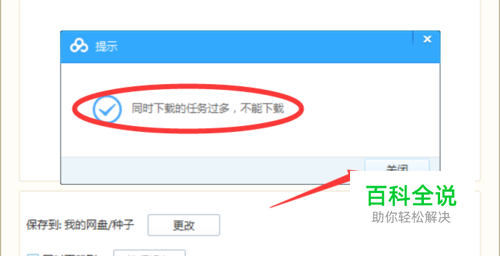 就出现了同时下载任务过多,不能下载的提示框,我们就要先点击 关闭按钮