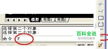 2.处输入倒圆角的指令F,也可直接点击倒圆角图标命令,按回车确认: