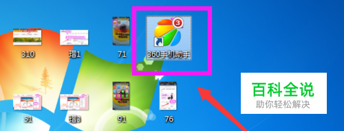 先在电脑和手机上安装360手机助手,点击电脑桌面的“360手机助手”。