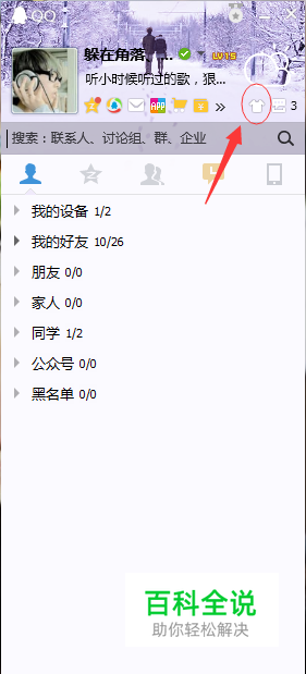 第二步,点击QQ右上角,有个像衣服的图标,进入到换肤界面。