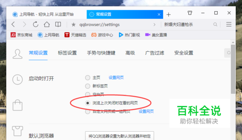 QQ浏览器设置启动时打开上次网页的方法