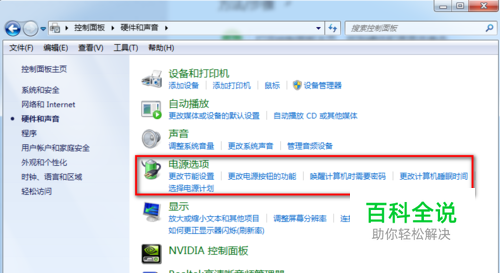打开硬件和声音后我们就可以看到电源选项了,再点击电源选项