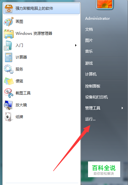 鼠标点击桌面左下角开始菜单,在右边菜单栏找到【运行】选项,点击打开。