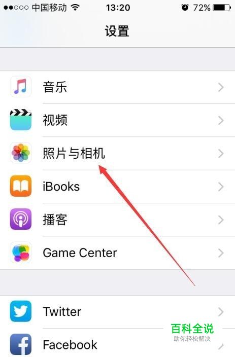 之后在“设置”中找到“照片与照相机”选项并点击。