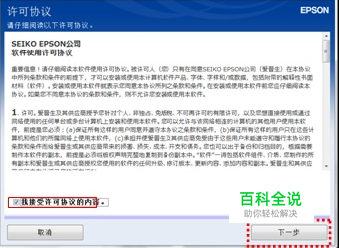 开始无线网络设置:将L365打印机随机驱动光盘装入计算机光驱;注:如果您的计算机没有光驱,点击(此处)下载安装文件。打开光盘运行“InstallNavi.EXE”文件;接受协议并点击“下一步”;