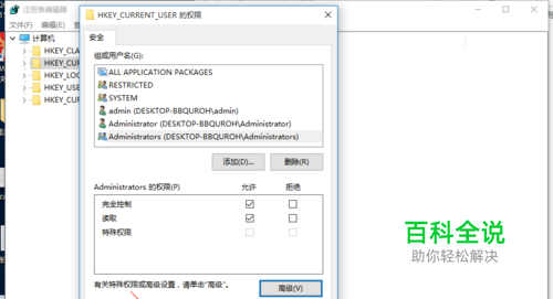 然后依次返回点击【确定】。最后回到“HKEY_CURRENT_USER的权限”对话框,点击【确定】,就完全设置完成啦。