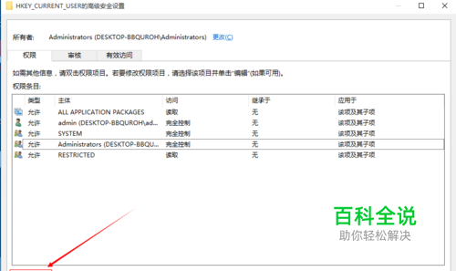 在打开的“HKEY_CURRENT_USER的高级安全设置”窗口中点击【添加】。