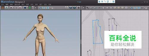 打开后的制版裁片就会显示在marvelous designer软件中,效果如图所示,将它们放到模特上,进行连接,然后模拟就可以穿在身上。