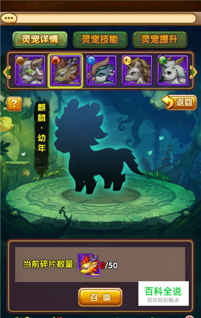 够数量了之后,我们返回到主界面,找到灵宠界面,然后找到你开出的那个灵宠的碎片,点击召唤。
