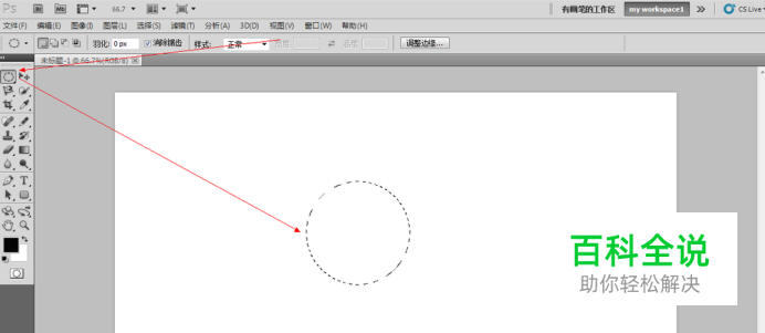 用选区工具中的椭圆画按住shift画一个正圆,如图所示。