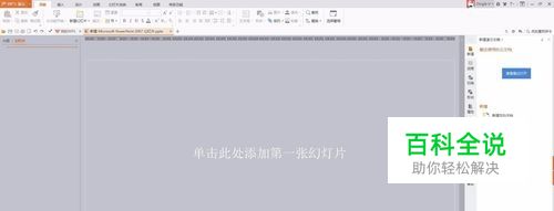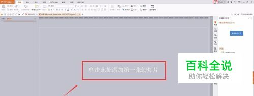【方式一】:点击中间灰色空白区域,对的,就是你看到的写着“ 单击此处添加第一张幻灯片”的地方!然后就搞定了。
