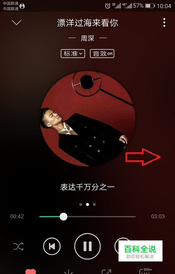 第二步进去歌曲播放界面之后,向右滑切换到歌词界面,如下图所示: