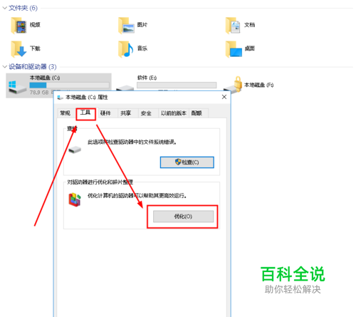 一、磁盘碎片整理 随着安装的的软件越来越多,增加、删除文件都会在磁盘上产生碎片,大量的碎是导致读取时间增长的原因;我们可以把碎片整理添加入系统任务中,让系统在空闲的时间里进行。 1.打开此电脑,在分区上右键属性,在属性里面选择优化。