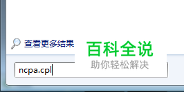首先我们点击开始按钮,然后在搜索框中输入ncpa.cpl并回车,如图: