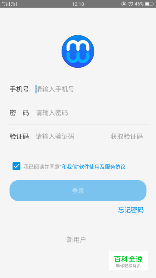 下载好之后,新用户需要先注册一下账号,这个只要用手机号注册就可以了,点击和我信,然后点击新用户注册,以前注册过的可以直接输入手机号点击登录。如图: