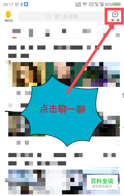 打开软件后,在打开的首页头条页面,点击右上角的聊一聊。如图所示