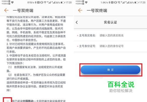 5、同意服务协议后,根据app 提示进行实名认证,完毕后点击 确定。此环节耗时较长,请耐心等待。